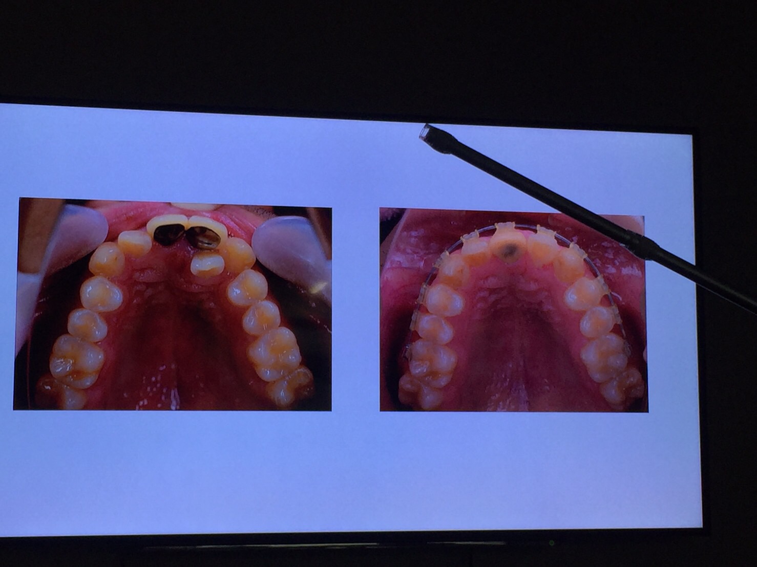 場合によりTADと呼ばれる矯正のためのインプラントを骨に埋めることで歯を動かしやすくしているそうです。右下に見えているのがTADです。